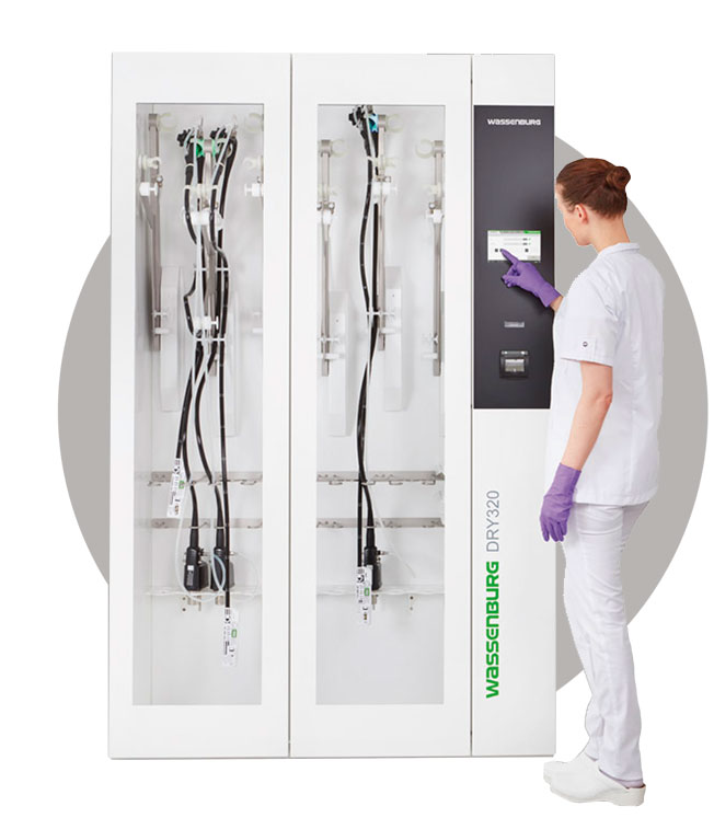 Designed to contribute to a safe and controlled treatment of flexible endoscopes. The WASSENBURG® DRY320 is a patented drying system that has been developed to provide ergonomic handling for its users, optimum endoscope positioning and proven drying efficacy.